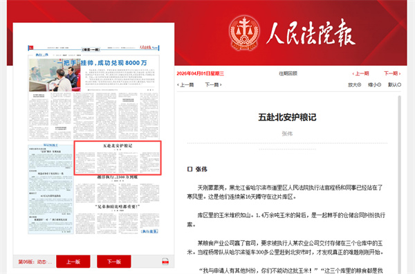 《人民法院报》报道哈尔滨市道里区法院:五赴北安护粮记