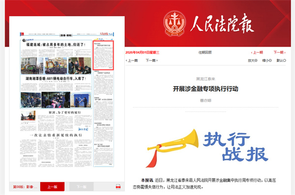 《人民法院报》:泰来县法院 开展涉金融专项执行行动