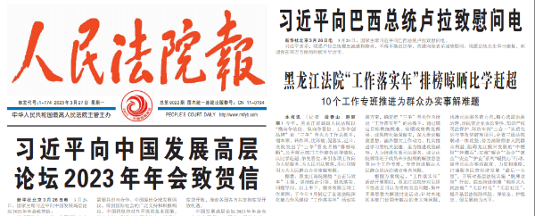 《人民法院报》头版报道黑龙江高院学习贯彻习近平总书记重要讲话和全国两会精神
