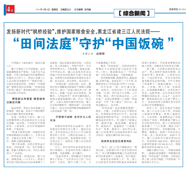 《人民法院报》报道建三江人民法院:“田间法庭”守护“中国饭碗”