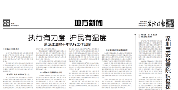 《法治日报》报道黑龙江法院十年执行工作:执行有力度 护民有温度