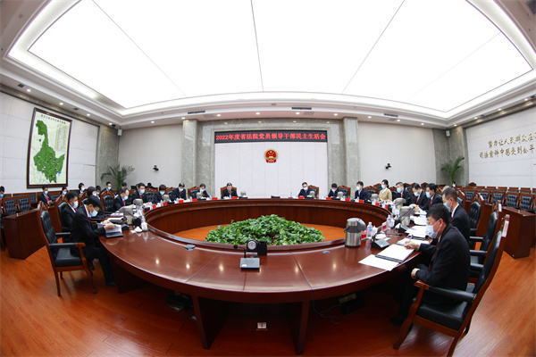 会议现场。张曦予摄 2月10日,省法院党组召开2022年度民主生活会。此次民主生活会主题是:全面贯彻习近平新时代中国特色社会主义思想,深刻领悟“两个确立”的决定性意义,增强“四个意识”、坚定“四个自信”、做到“两个维护”,团结带领党员干部群众以奋发有为的精神贯彻落实党的二十大作出的重大决策部署。省法院党组书记、院长党广锁主持会议并讲话。省委督导组到会督导。 省法院党组书记、院长党广锁主持会议并讲话。张曦予摄 省法院党组高度重视此次民主生活会,按照省委有关部署要求,会前认真组织学习研讨,广泛征求意见建议,开展谈心谈..
