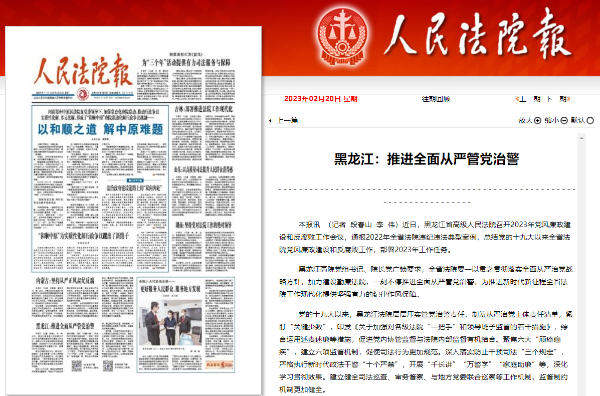 《人民法院报》头版:黑龙江推进全面从严管党治警