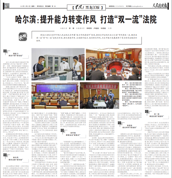 《人民法院报》报道哈尔滨中院:提升能力转变作风 打造“双一流”法院