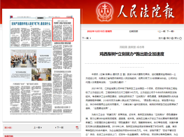 《人民法院报》:梨树“立刻就办”跑出助企加速度