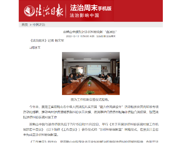 《法治周末》:双鸭山中院架起涉侨纠纷化解“直通桥”