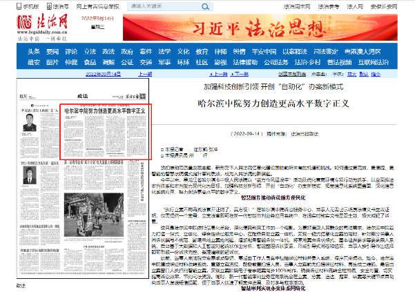 《法治日报》报道:哈尔滨中院努力创造更高水平数字正义