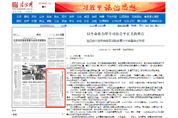 《法治日报》:以生命化为坚守司法公平正义的基石