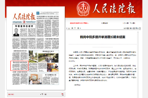 《人民法院报》头版报道:鹤岗中院多措并举清理长期未结案