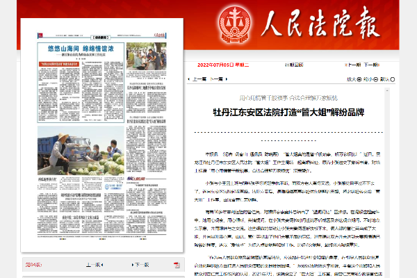 《人民法院报》:牡丹江东安区法院打造“管大姐”解纷品牌