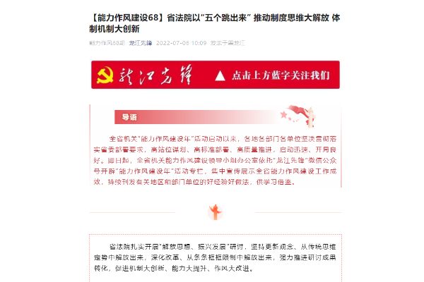 龙江先锋:省法院以“五个跳出来” 推动制度思维大解放 体制机制大创新