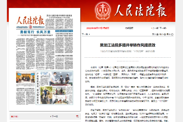 《人民法院报》头版头题:黑龙江法院多措并举转作风提质效