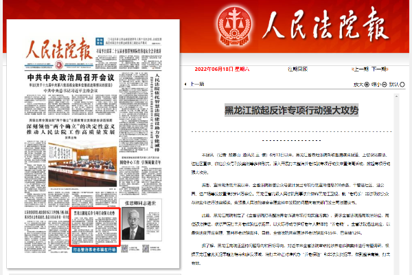 《人民法院报》头版:黑龙江掀起反诈专项行动强大攻势