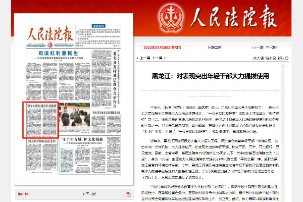 《人民法院报》头版:黑龙江法院对表现突出年轻干部大力提拔使用