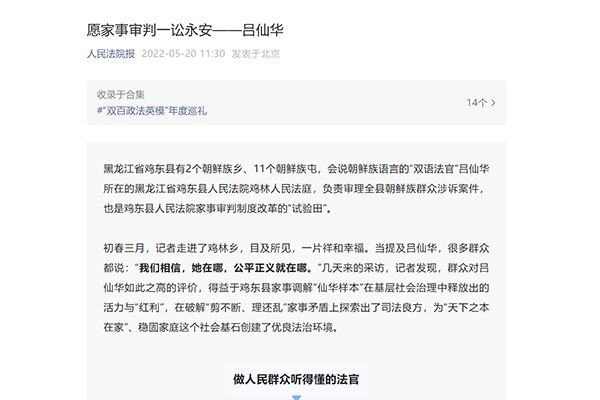 《人民法院报》:愿家事审判一讼永安——吕仙华