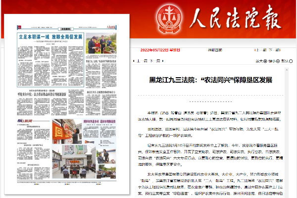 《人民法院报》报道:黑龙江九三法院“农法同兴”保障垦区发展