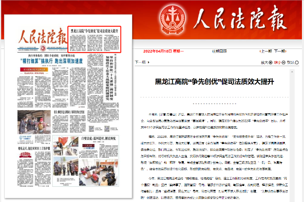 《人民法院报》头版头题:黑龙江高院“争先创优”促司法质效大提升