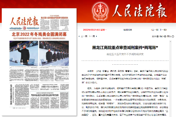 《人民法院报》头版:黑龙江高院重点审查减刑案件“两笔账”