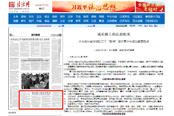 《法治日报》报道:齐齐哈尔建华法院三个“延伸”提升青少年法治教育质效