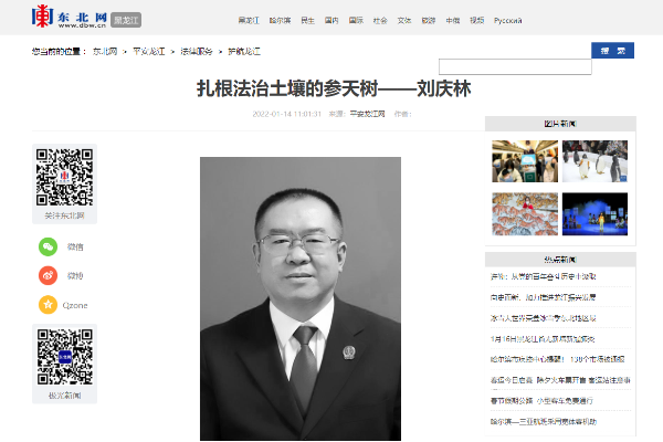 《平安龙江网》:致敬新时代政法英模 扎根法治土壤的参天树——刘庆林