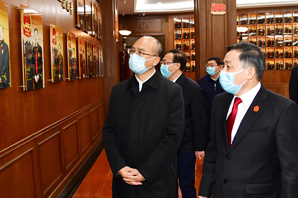 11月18日下午,省委书记许勤调研走访省法院机关,宣讲党的十九届六中全会精神,与领导班子交流,听取意见建议。他强调,要把党的十九届六中全会精神学习好、宣传好、贯彻好,从党的百年奋斗历史中汲取智慧力量,坚定理想信念,牢记初心使命,服务大局、公正司法、司法为民,为建设更高水平的平安黑龙江、法治黑龙江发挥更大的作用。 许勤听取省法院党组书记、院长石时态汇报后,到省法院机关党建大厅、图书馆等场所进行了实地调研,对省法院党的建设、文化建设等工作给予充分肯定,向全省法院干警和工作人员致以亲切问候。许勤指出,近年来,省法院党组牢牢坚持党的绝对领导,..