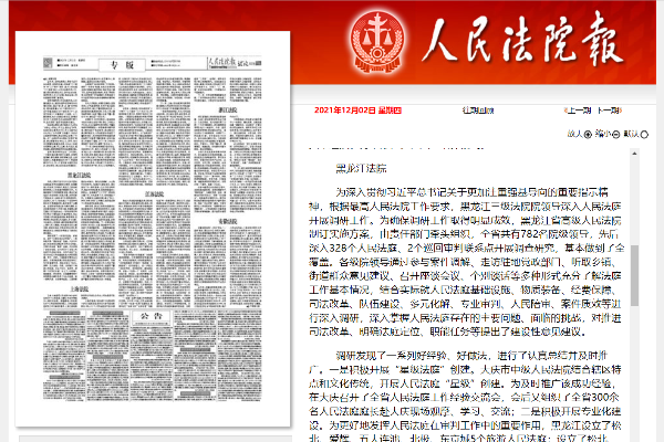 《人民法院报》:黑龙江三级法院领导深入人民法庭调研情况综述