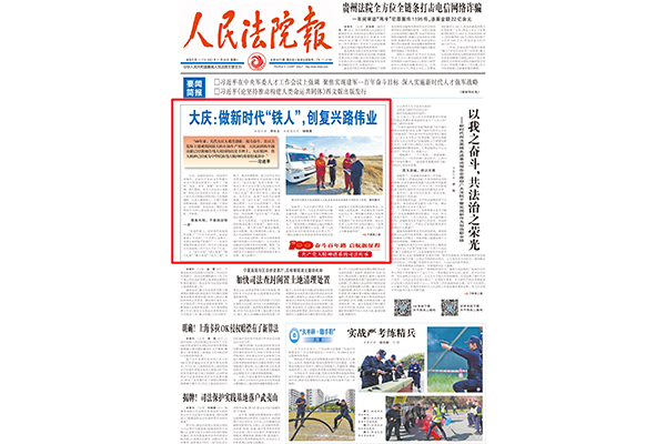 《人民法院报》头版报道大庆:做新时代“铁人”,创复兴路伟业