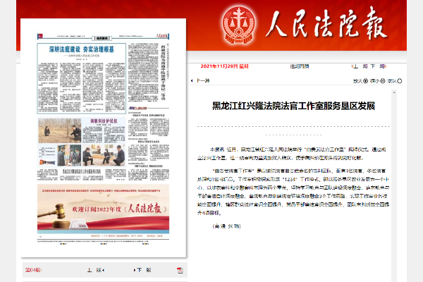 《人民法院报》报道:黑龙江红兴隆法院法官工作室服务垦区发展
