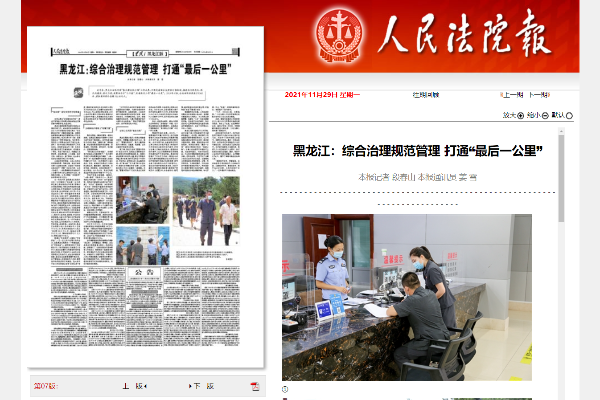 《人民法院报》报道黑龙江:综合治理规范管理 打通“最后一公里”