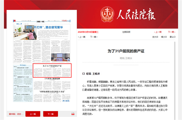 《人民法院报》报道桦川县法院:为了31户居民的房产证