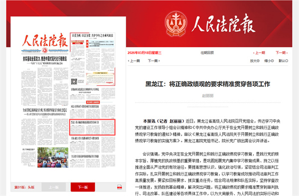 《人民法院报》头版报道:黑龙江 将正确政绩观的要求精准贯穿各项工作