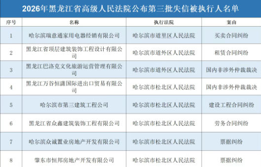 失信大曝光!2026年黑龙江高院第三批失信被执行人名单来了! 本次失信曝光台共曝光89家失信企业一起来看看吧!