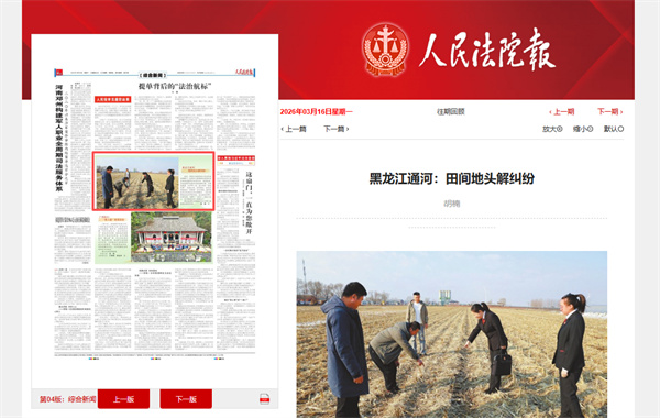 近日,黑龙江省通河县人民法院成功调解了一起因无人机喷洒农药漂移造成邻地受损所引发的纠纷。时值春耕,承办法官邓丽薇为妥善化解矛盾,与镇农技员、村干部一道,深入田间“踏地采样”,现场比对、核算损失。法官在田间地头“背靠背”分头劝说,最终促成双方达成协议并当场履行。一起可能影响农时的邻里纠纷,在庄稼地里得以实质化解,既解了“法结”,更暖了民心,有力服务保障了春耕生产。图为法官在田间组织双方当事人共同商议赔偿数额。
