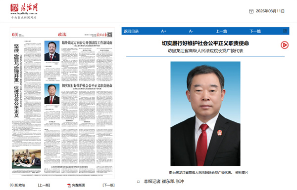 《法治日报》:切实履行好维护社会公平正义职责使命 访黑龙江省高级人民法院院长党..