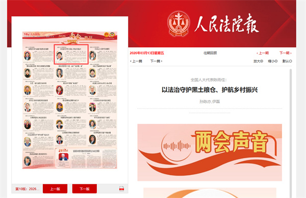 《人民法院报》:全国人大代表陈雨佳 以法治守护黑土粮仓、护航乡村振兴
