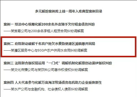 2026年1月30日,最高人民法院召开“深化多元解纷机制 做实定分止争”新闻发布会,发布九件已经入库的典型案例。这些案例反映了各类主体、各行各业充分运用多元解纷机制解“法结”、化“心结”的生动实践,彰显了中国特色多元解纷体系建设丰硕成果。 其中黑龙江法院一案例入选! 案例二 府院联动破解千名农户拖欠水费致使灌区濒临撤并困局 ——某灌区服务中心与930户农户供用水合同纠纷调解案 【基本案情】 2025年春耕在即,因邢某等930户农户(涉及8个乡镇、96个村屯)..