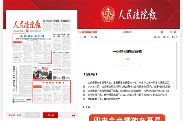 《人民法院报》头版报道佳木斯市东风区法院:一份特别的调解书