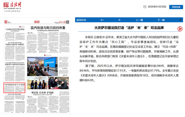 《法治日报》:大庆萨尔图法院打造“法护‘未’来”司法品牌