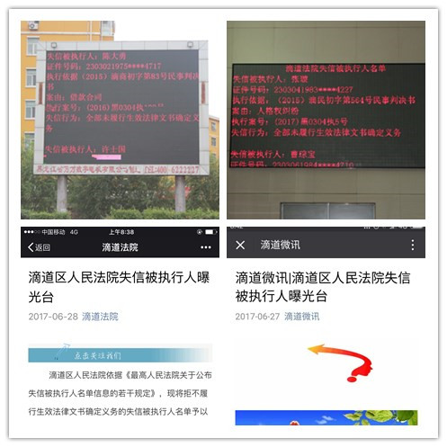 鸡西市滴道区人民法院积极探索和完善执行案件信用惩戒机制,严厉打击各种规避执行行为,着力破解执行难题,让失信“老赖”无处遁形。截止目前,已有292名自然人、85个法人组织被纳入“黑名单”,并在最高人民法院失信被执行人名单库等多种媒体上曝光。一是加大失信曝光力度,推进执行威慑机制建设。严格把住失信被..