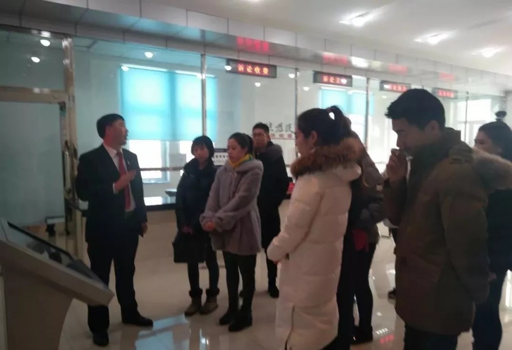 2月24日,牡丹江市第一中学高二九班的55名同学怀着激动的心情,在老师的带领下,来到牡丹江中院,参加“公众开放日”活动,上好开学第一课。在法制浮雕墙前,同学们整齐的排好队伍,认真地听着讲解员关于古体的“法”字、竹简、刑鼎等法制元素的讲解。在诉讼服务中心,“把身份证放到这个机器上,就能查到案..