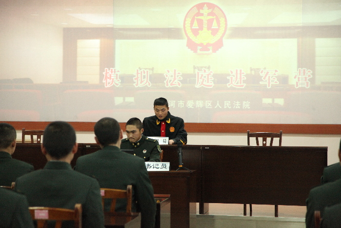 当日,爱辉区法院还深入辖区军营开展了“模拟法庭”活动,法庭中的所有角色均由官兵扮演。针对官兵们的司法需求,法院精心挑选了一起婚约财产纠纷案件,从真实案例中提炼素材,编写“庭审”剧本。为开展好此次活动,法院还多次联系部队官兵,与他们一起选择角色、邀请他们到法院旁听开庭过程,对扮演角色的官兵从法律知识、司法礼仪、庭审程序等方面进行精心指导,多次排练预演,务求将一场严肃、规范、真实的“庭审”展现给部队官兵,让官兵们在直观的案件庭审中接受法制教育。