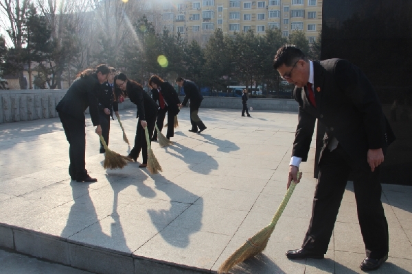 在清明节即将到来之际,为纪念著名抗日英雄杨靖宇将军, 3月31日晨,哈尔滨市道外法院机关党委组织青年党员、团员干警到杨靖宇烈士纪念碑祭扫,缅怀烈士的丰功伟绩,激励干警立足本职岗位,发扬奉献精神,奋力拼搏,为国家的审判事业做出自己的贡献。