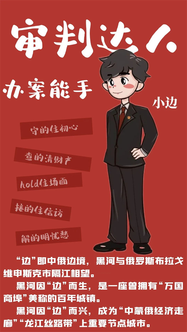 传播法治精神,讲好龙江法院故事。今天为大家介绍两位新朋友“小边”与“小蝶”他们来自黑河中院。