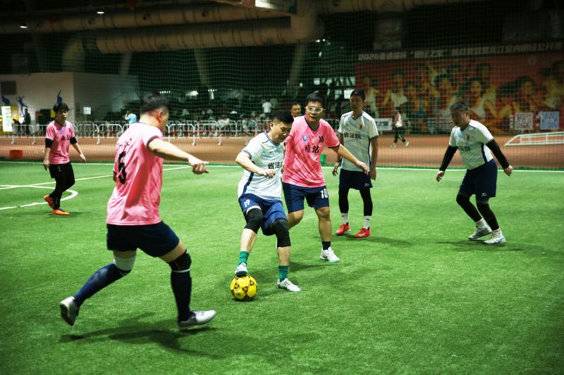 赛前,主裁判详细宣读比赛规则,组织双方队员有序完成入场仪式、交换队旗及猜边环节。比赛在彼此尊重、友好竞技的氛围中正式打响。赛场上,双方队员精神饱满、奋勇争先,传球、抢断、射门等动作行云流水、配合默契。场外,加油助威声此起彼伏,气氛热烈融洽。最终,省法院龙法足球队以4:3比分取得了比赛胜利。