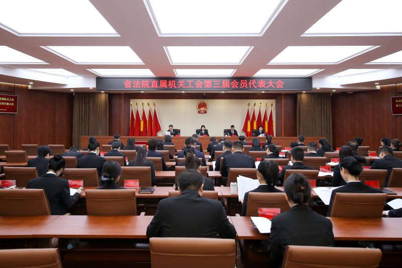 为进一步加强工会组织建设,凝聚法院干警干事创业合力,夯实工会服务根基,1月29日,省法院直属机关工会第三届会员代表大会在省法院机关二楼多功能厅召开。