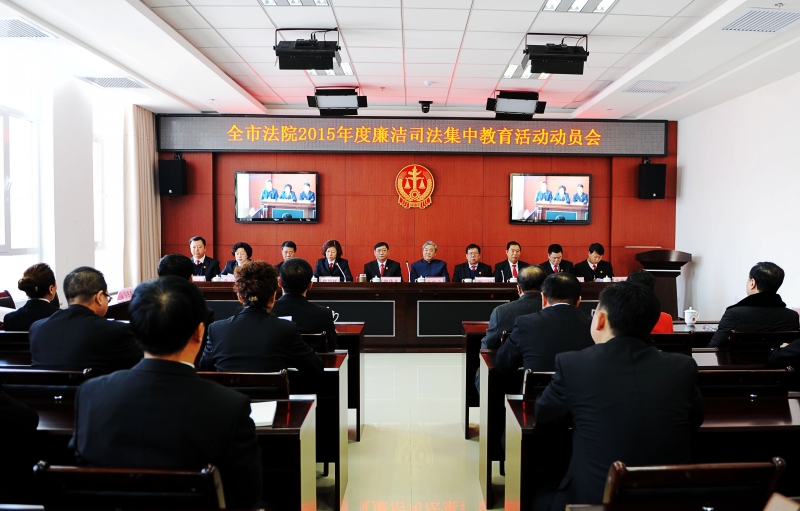 为认真贯彻落实黑龙江高院廉洁司法集中教育活动动员会精神,5日上午9时,齐齐哈尔中院召开了全市法院2015年度廉洁司法集中教育活动动员视频会议,集中部署全市法院系统廉政教育活动。中院党组书记、院长郝伟夫与班子成员签订了党风廉政建设责任书。郝伟夫要求全体干警高度重视,重点围绕理想信念教育、宗旨意识教育、法纪教育、作风教育、警示教育、责任教育的“六个教育”,开展好为期3个月的集中教育活动,达到源头治理、源头预防、源头管控,各基层法院要按省院要求,加强领导,落实责任,切实抓出成效。