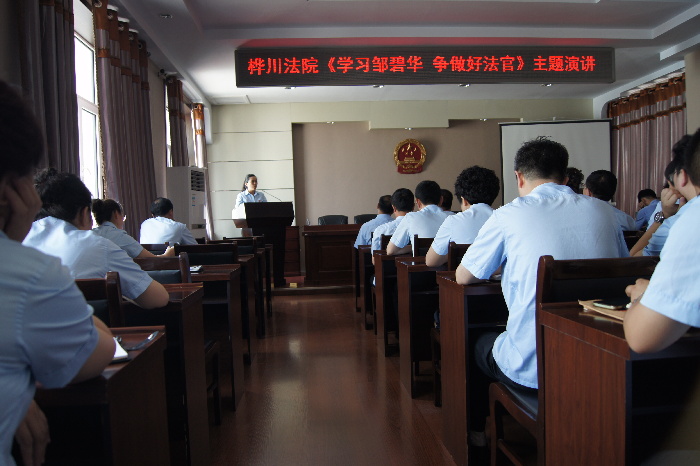 近日,桦川县法院为了深入学习邹碧华同志先进事迹,举办了题为《学习邹碧华 争做好法官》主题演讲比赛。比赛以支部为单位派选手参加。比赛中,各位选手以饱满的热情、生动的语言,紧紧围绕主题,结合自身工作实际,以身边人、身边事和自己的亲身感受为题材,从不同角度诠释邹碧华精神。
