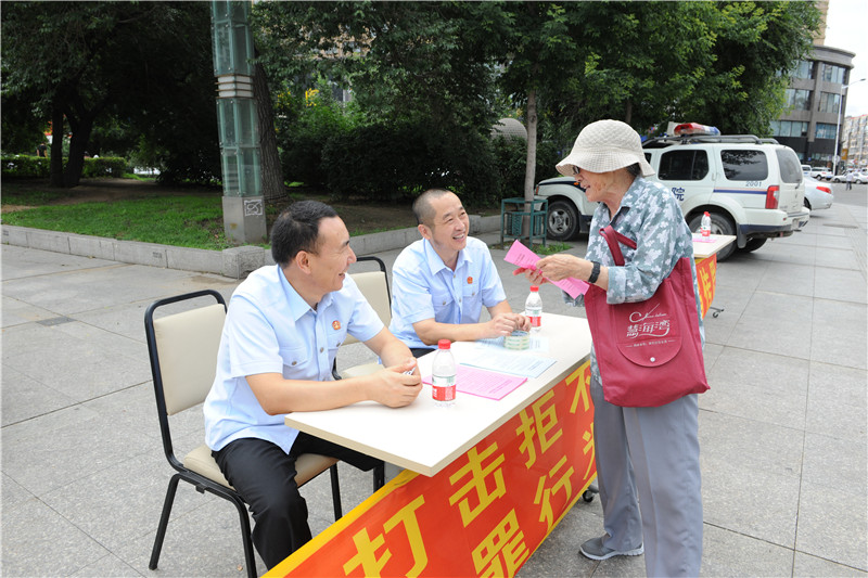 7月27日,齐齐哈尔市中级人民法院及龙沙、铁锋、建华三家基层法院在中环广场开展了"集中打击拒不执行判决、裁定等犯罪行为专项行动新闻宣传周"活动,以集中打击拒不执行判决、裁定等罪犯行为专项行动为载体,加大对集中打击拒不执行判决、裁定等犯罪行为专项行动成果的宣传力度,让社会公众进一步了解人民法院重拳打击"老赖"、维护社会诚信的决心。