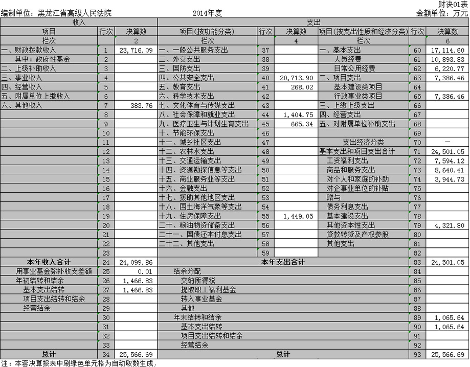 黑龙江省高级人民法院收入支出决算总表