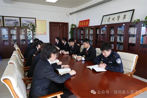 为深入推进书香法院建设,厚植全院学习氛围,筑牢司法为民、公正司法思想根基,结合饶河县边境口岸、赫哲故里、革命老区的地域特色,饶河县人民法院近日举办主题读书分享会,让书香浸润司法初心,以学习凝聚履职力量。分享会上,各部门干警代表紧扣主题,立足审判执行、多元解纷、边境司法服务、涉农涉旅案件办理等..